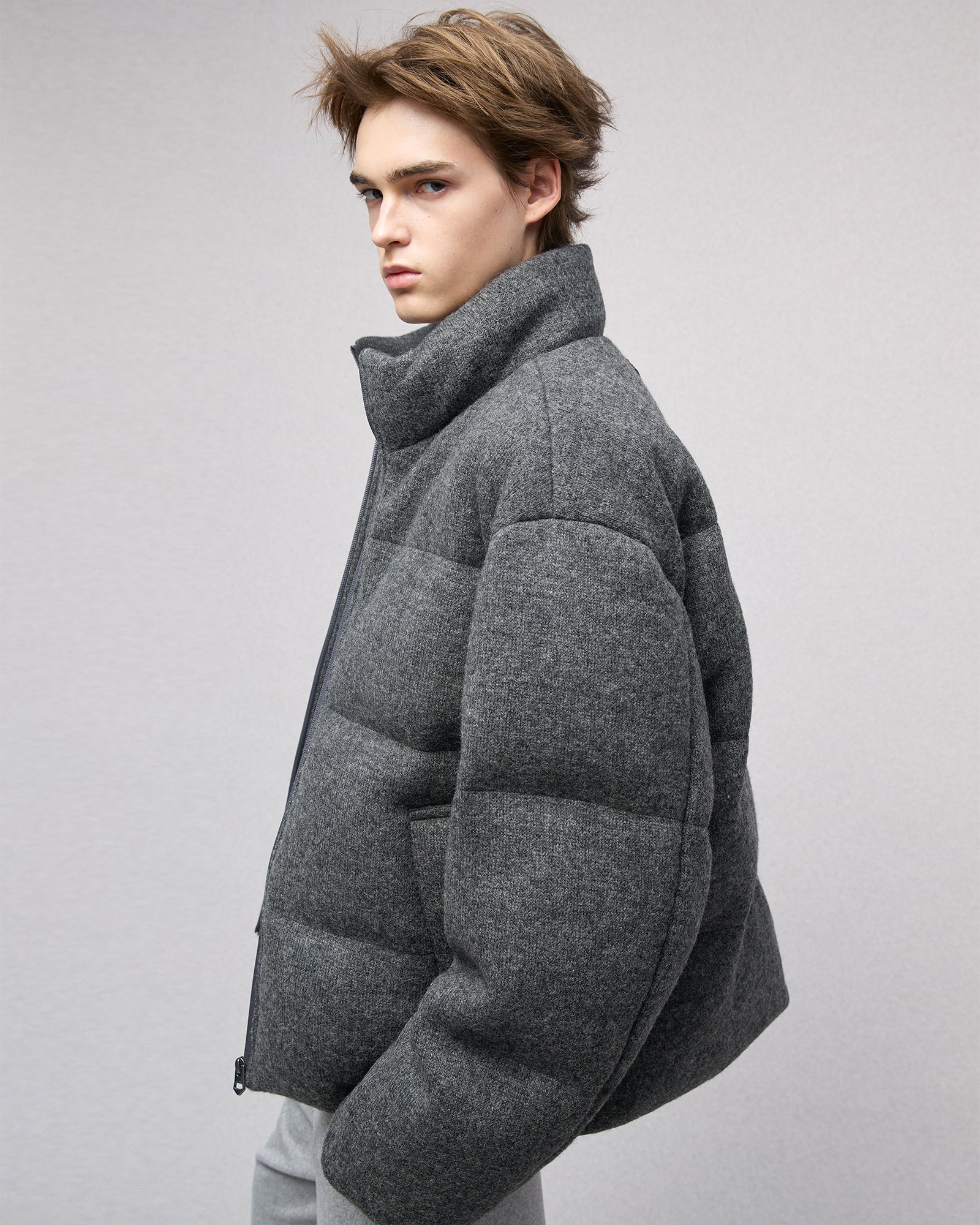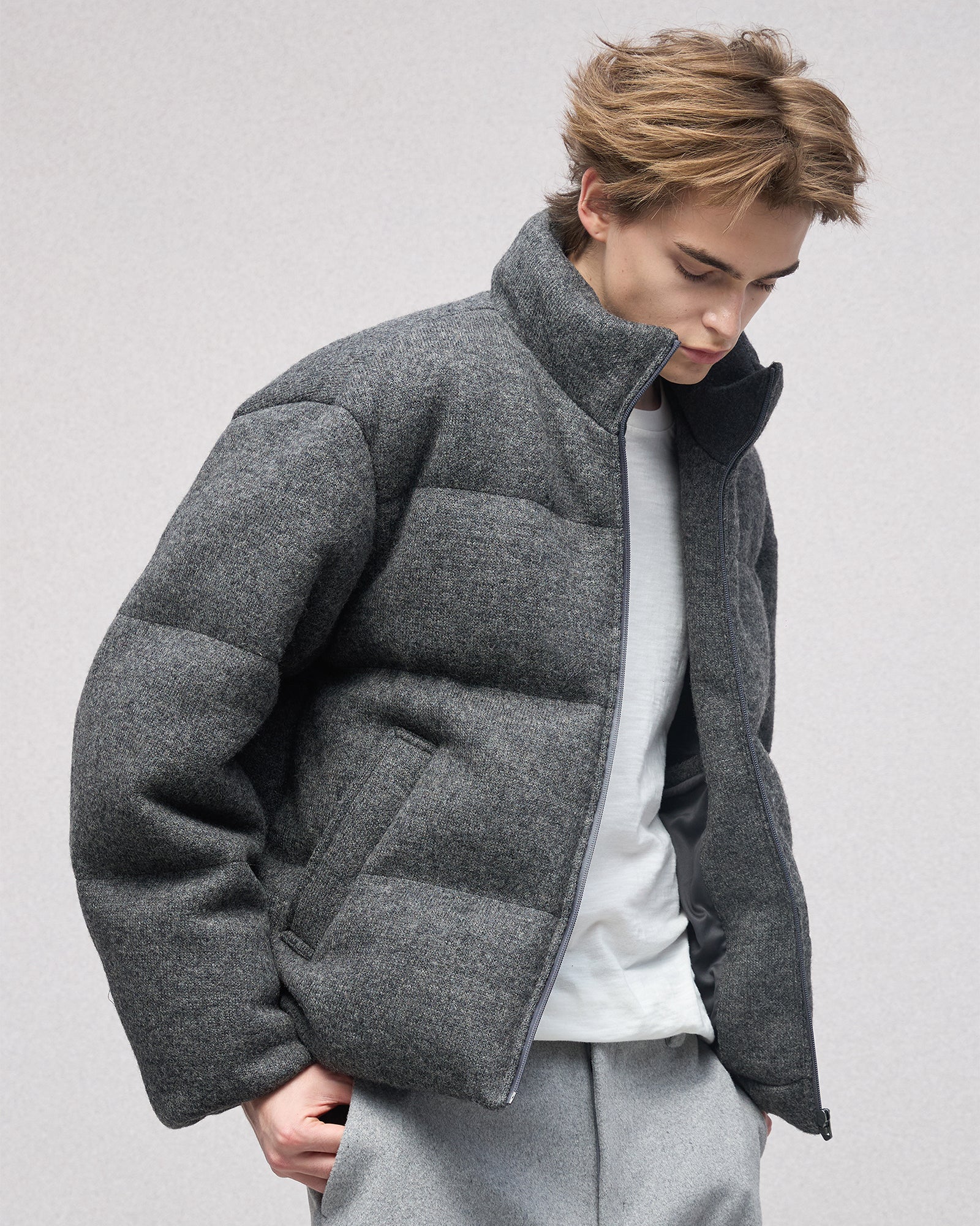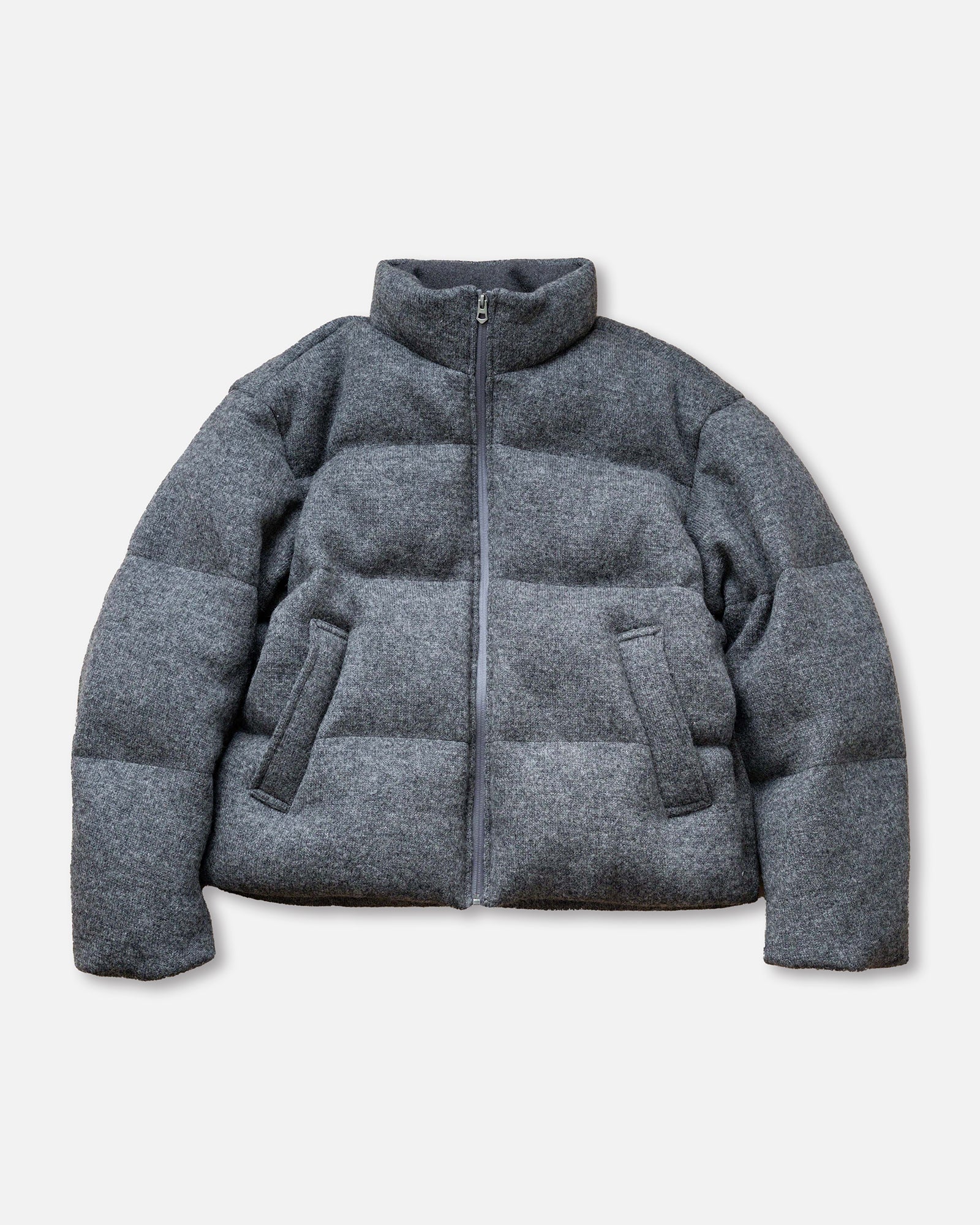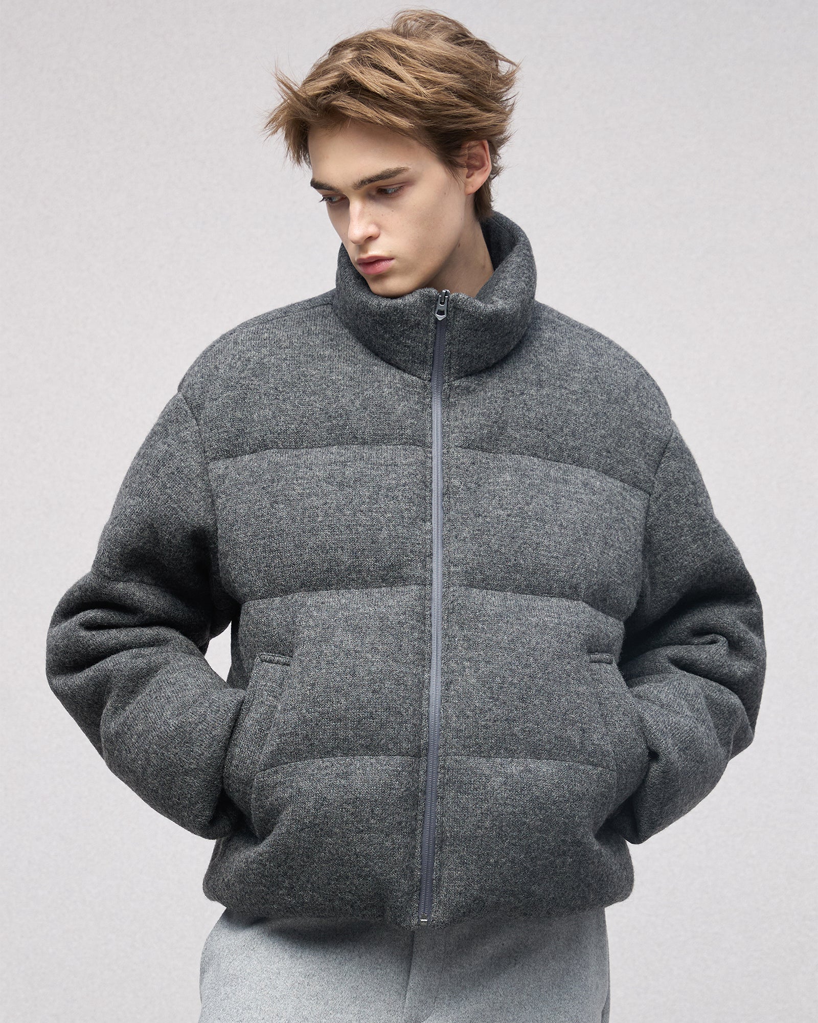 Wool-blend Gray Puffer Down Jacket