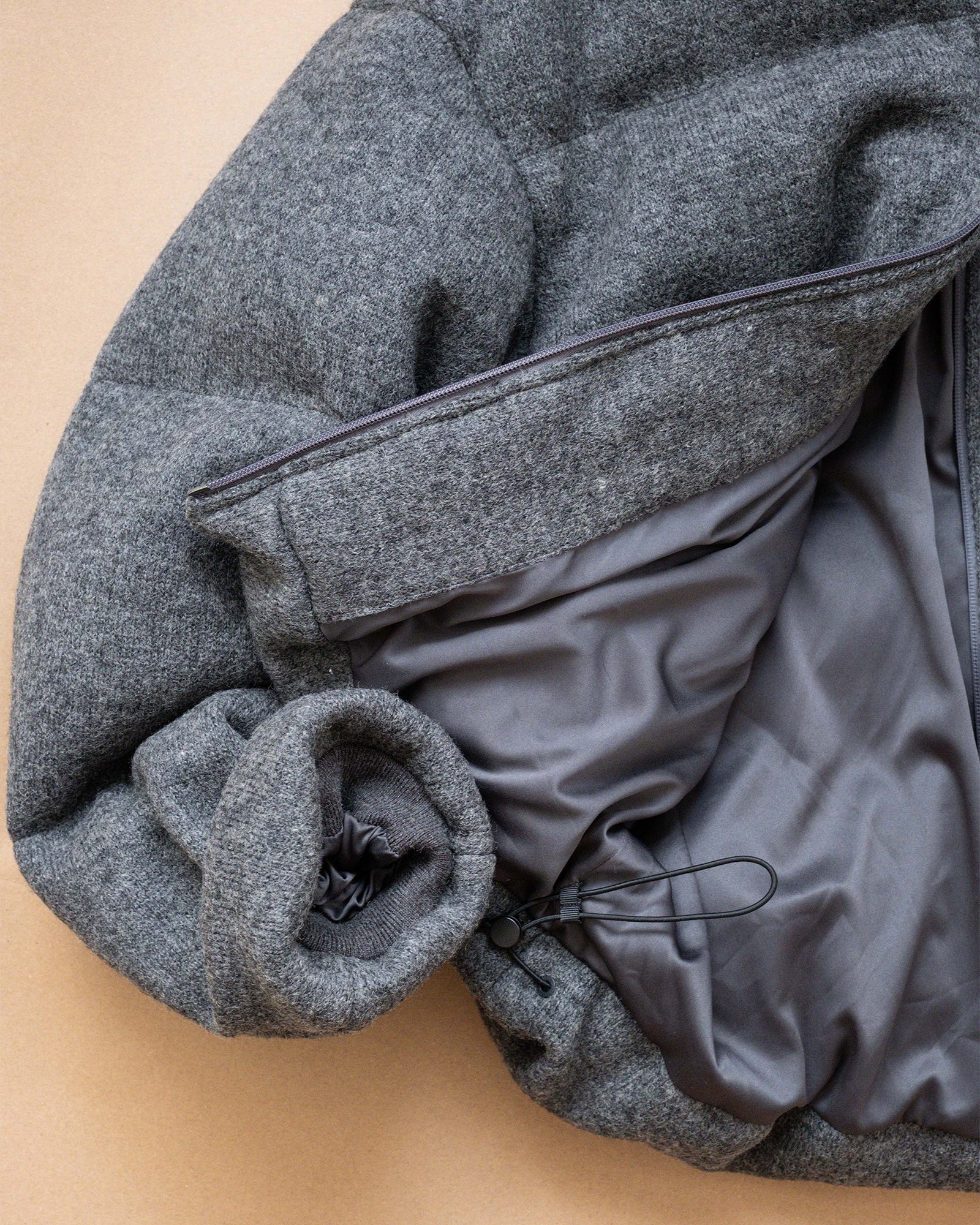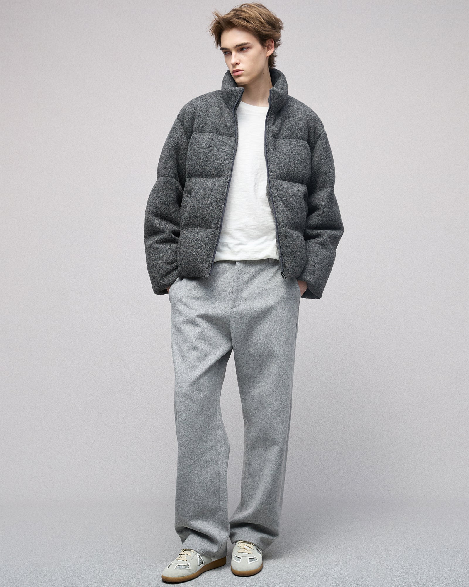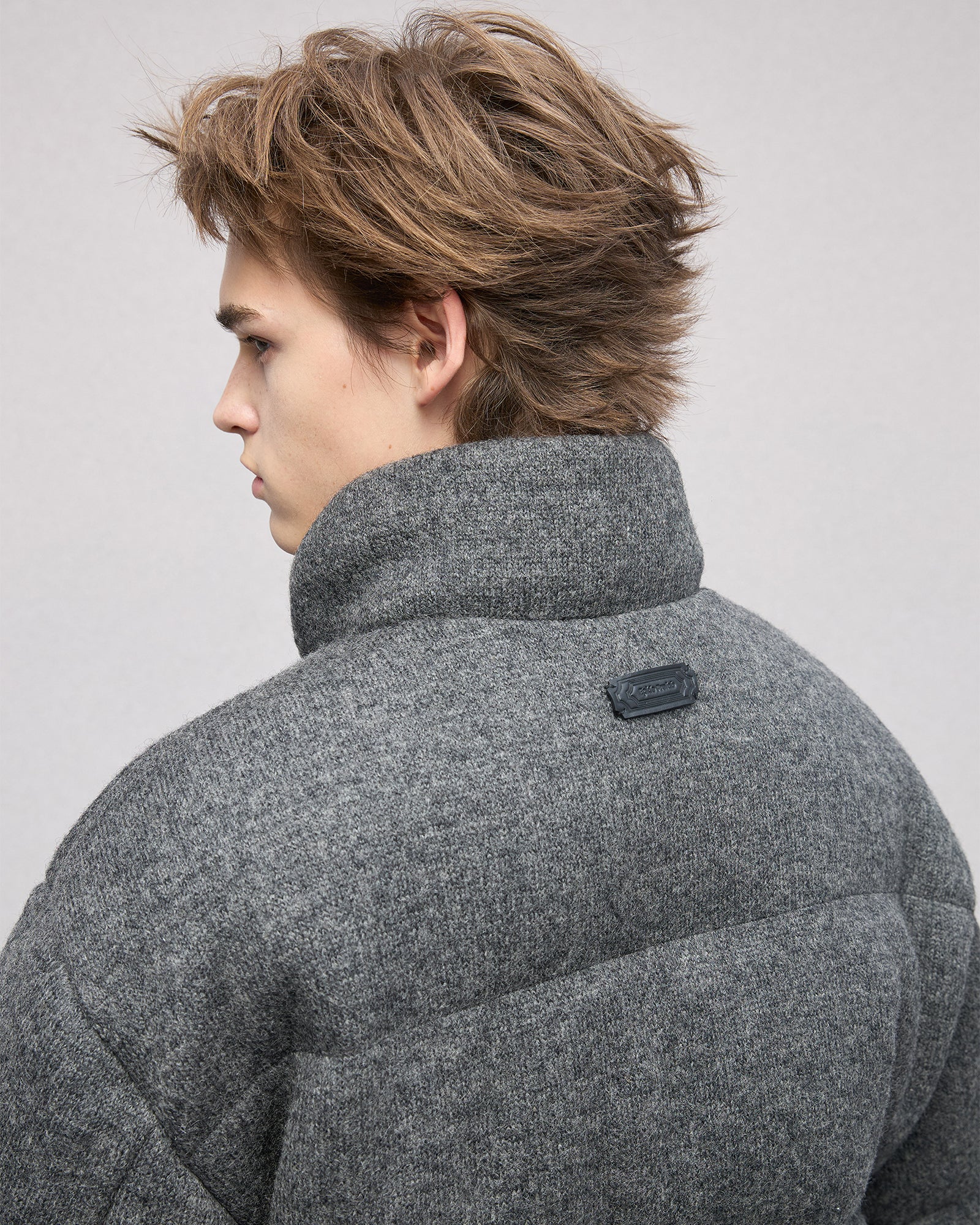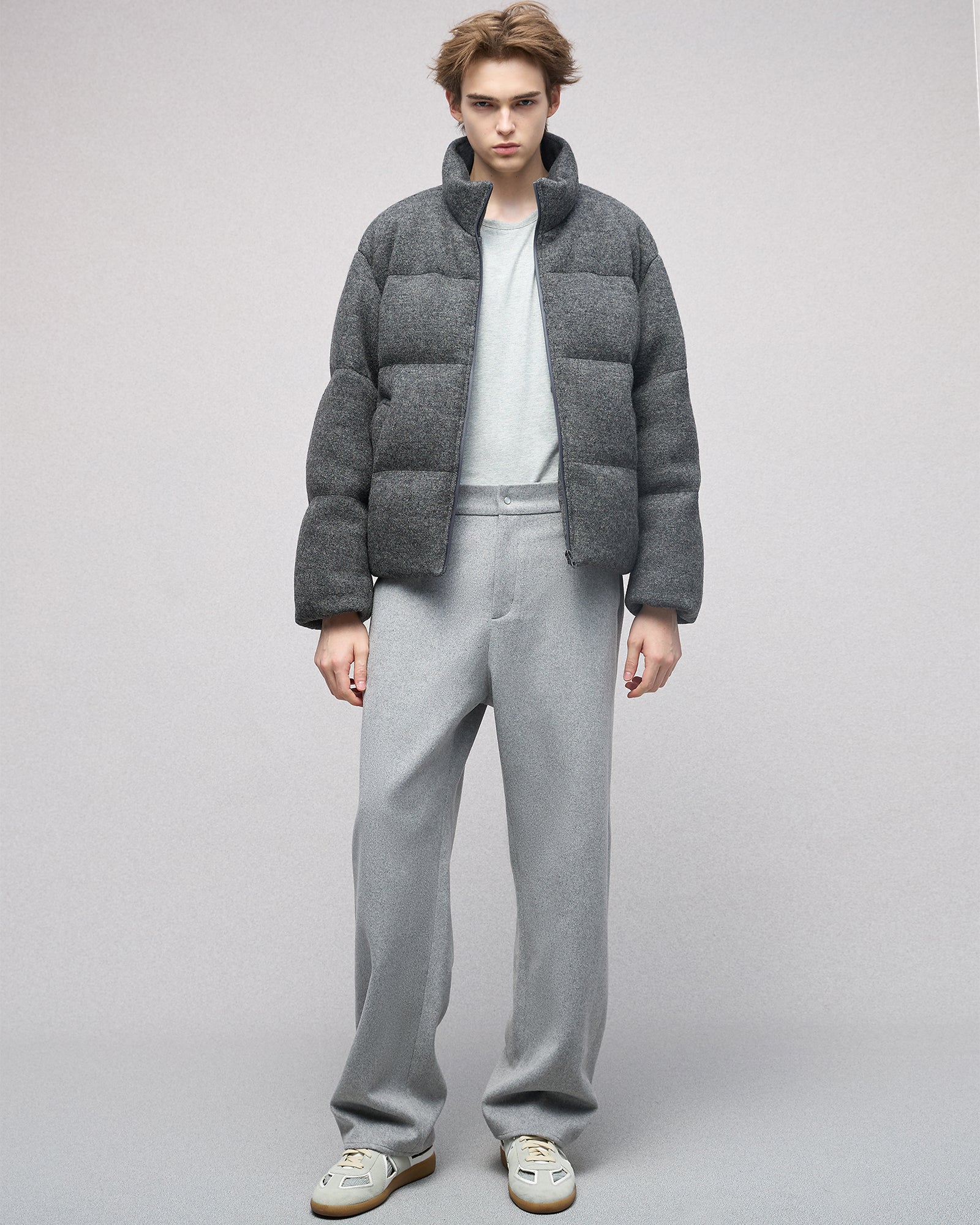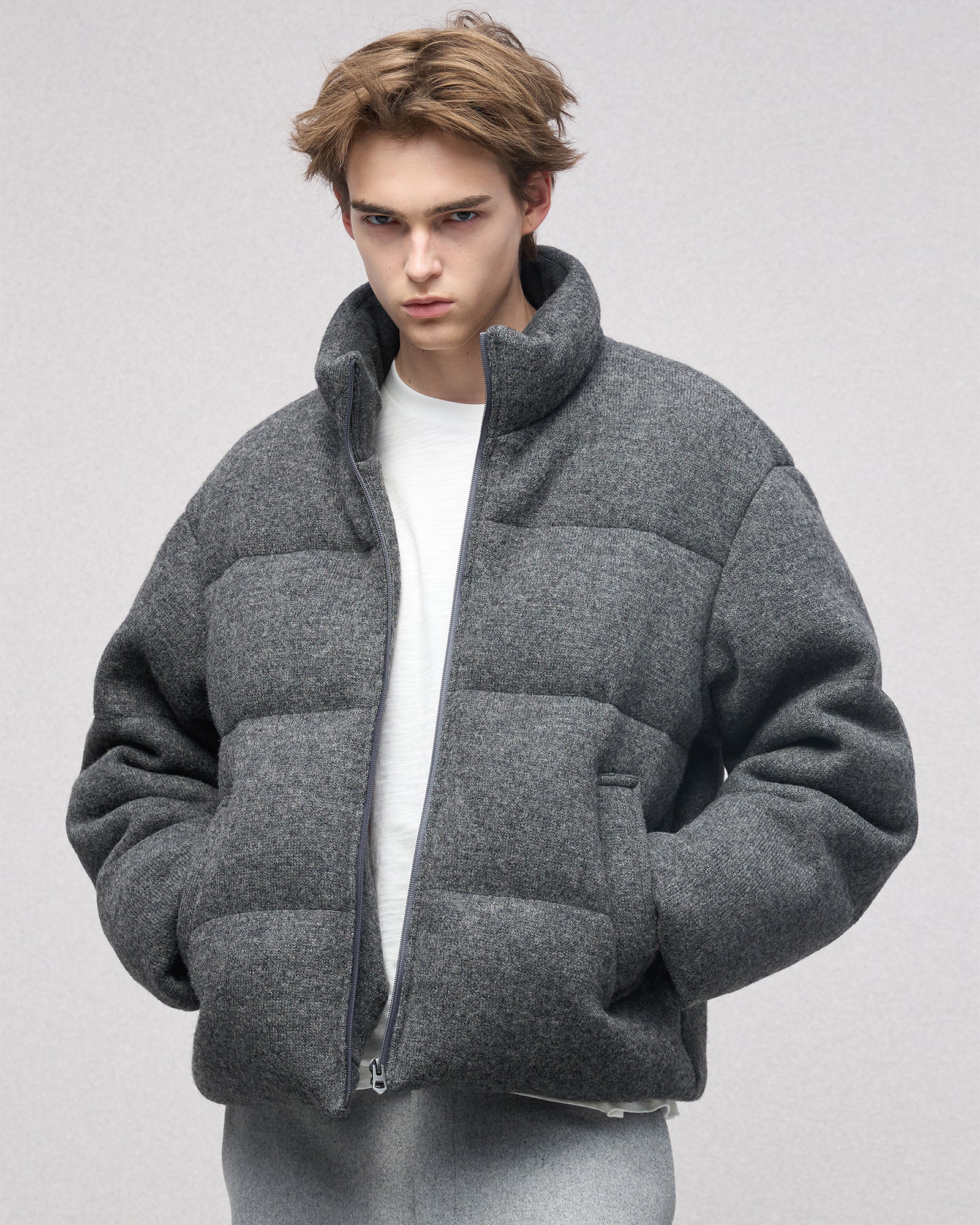 Wool-blend Gray Puffer Down Jacket